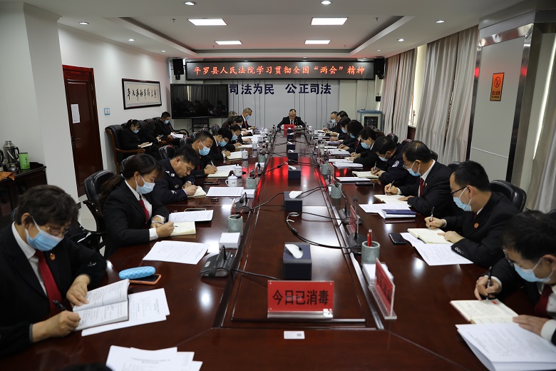 会议重点传达学习了习近平总书记在全国两会期间的重要讲话精神、政府工作报告、最高人民法院工作报告,自治区、市、县党委和上级法院关于学习贯彻落实全国两会精神的要求等内容。四名同志在会上围绕“学习贯彻全国两会精神”作了交流研讨。