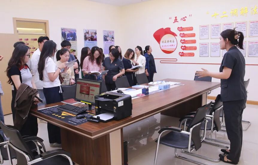 活动中,石嘴山中院机关党委负责同志详细介绍了法院党建工作开展情况,重点围绕法院党建工作标准化规范化建设、机关党建与业务工作深度融合、“‘五心’铸法魂”党建品牌建设和“四强”党支部建设等内容展开。观摩组实地参观了在线调解室、党建活动室和特色法庭,查阅了党建资料,深入了解法院在组织建设、制度建设、队伍建设及特色活动等方面的创新实践。
