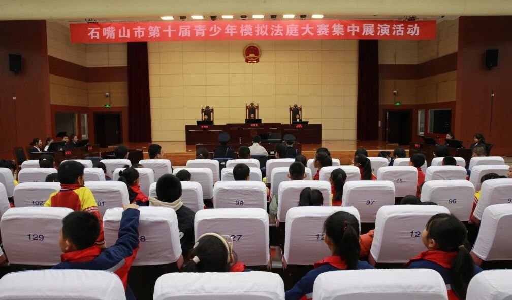 今天是第十二个国家宪法日,石嘴山市中级人民法院联合团市委、市教育局在石嘴山中院大法庭举办石嘴山市第十届青少年模拟法庭现场集中展演活动,全市中小学师生代表共200余人参加。