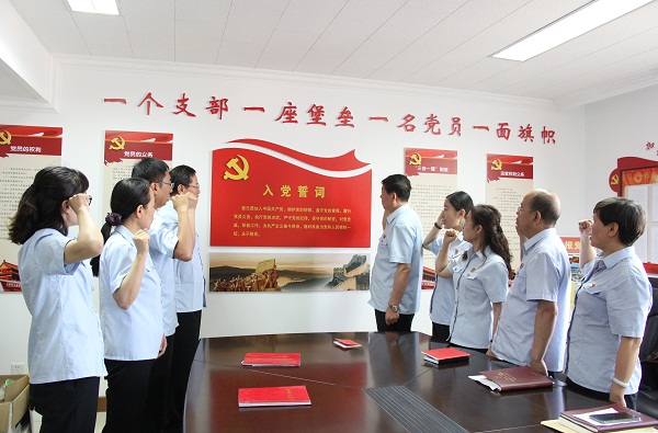 | 6月22日,办公室、研究室党支部开展“悟初心担当作为转作风走在前列”支部主题党日活动,院党组书记、院长陆维东带领支部党员重温入党誓词 |